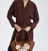 Çiçek Motifli Taba Deri Çanta