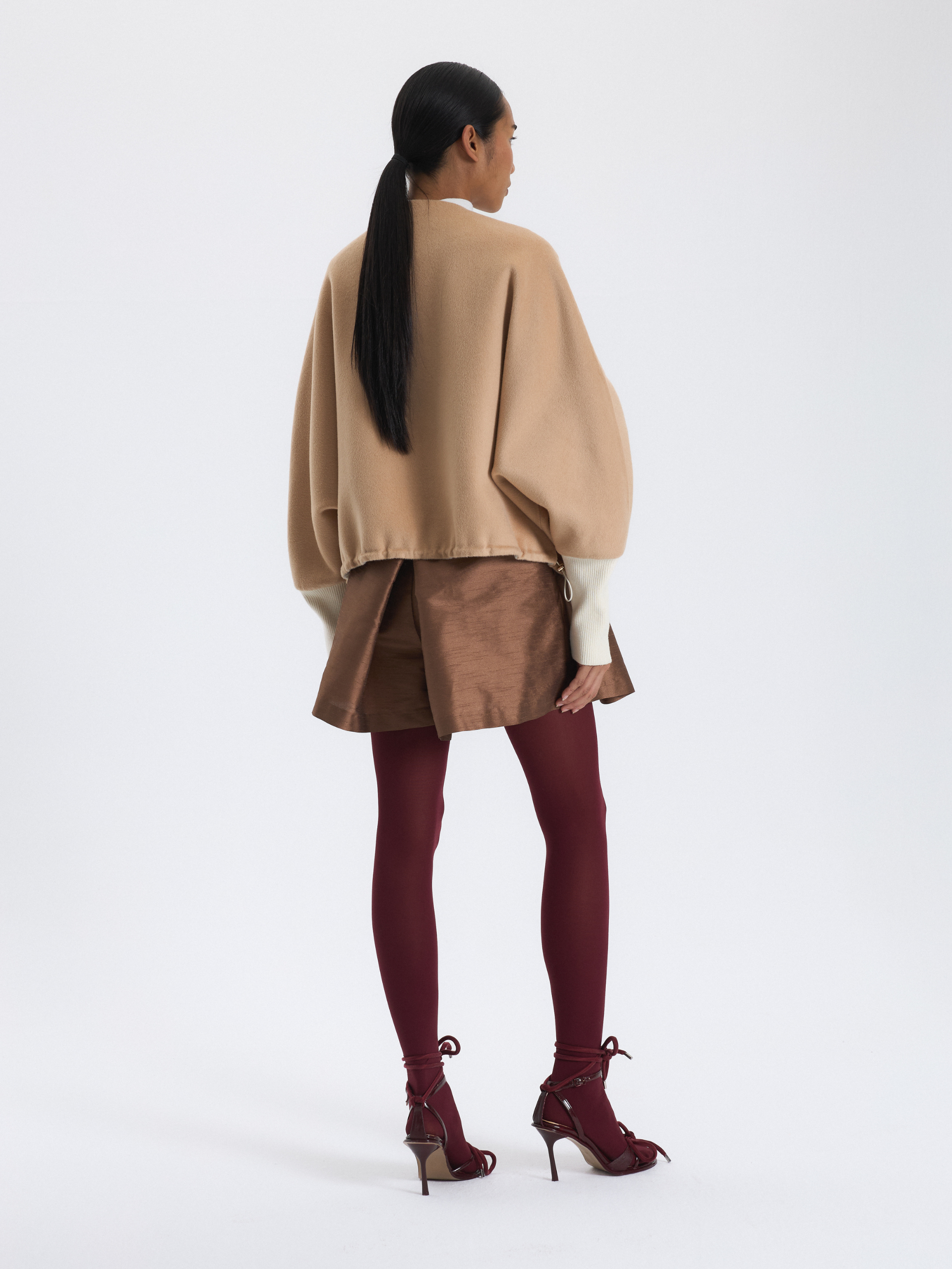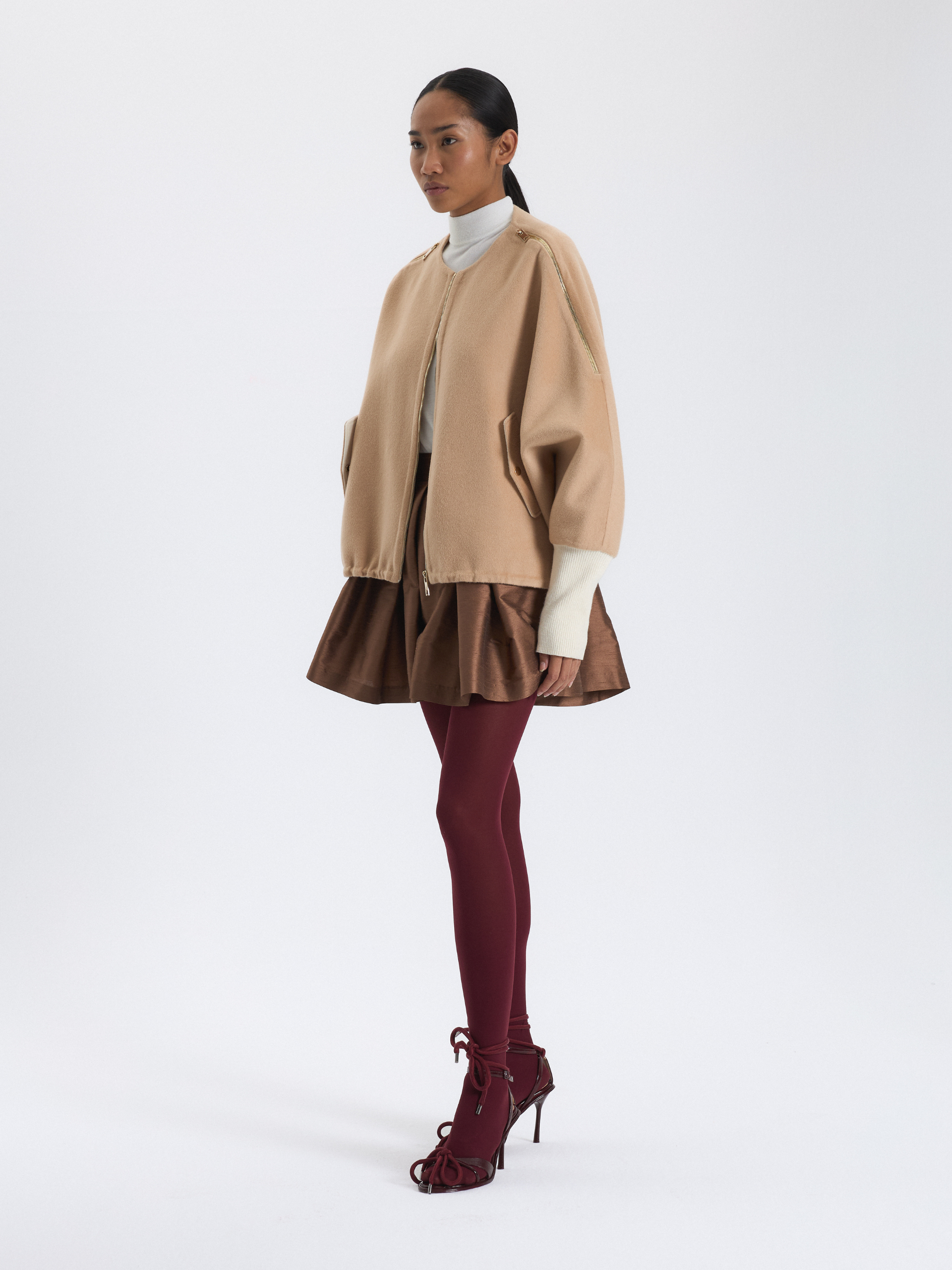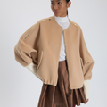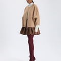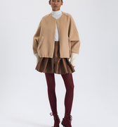 Bej rengi kısa kaşe kabanın kollarında fermuar detayı yer alıyor. Bu kabanla gündüz kombinlerinizi şıklaştırabilirsiniz.
