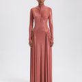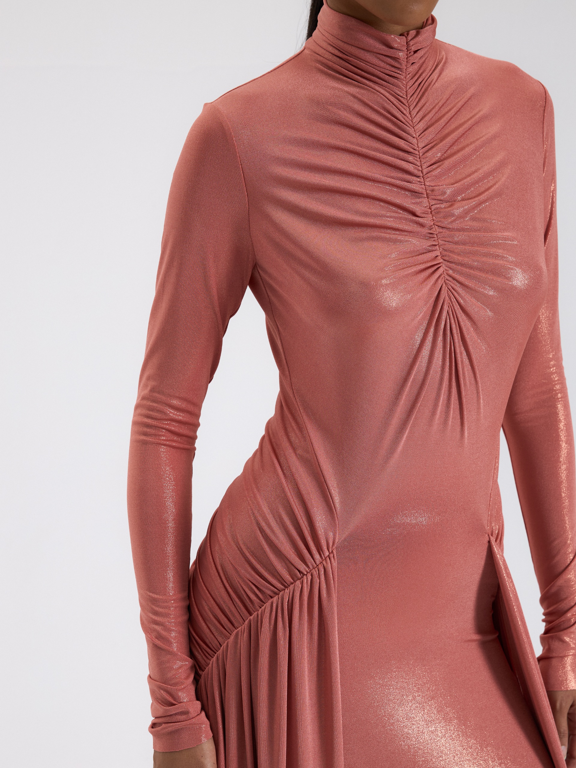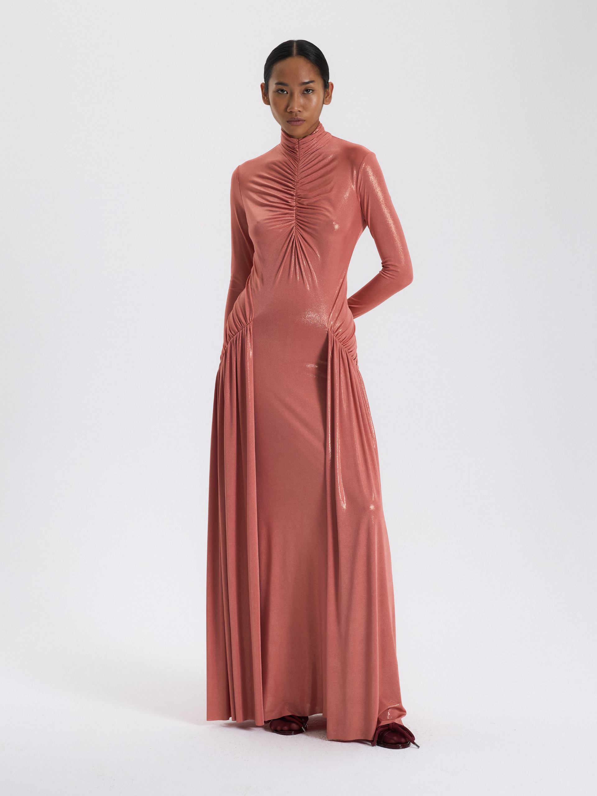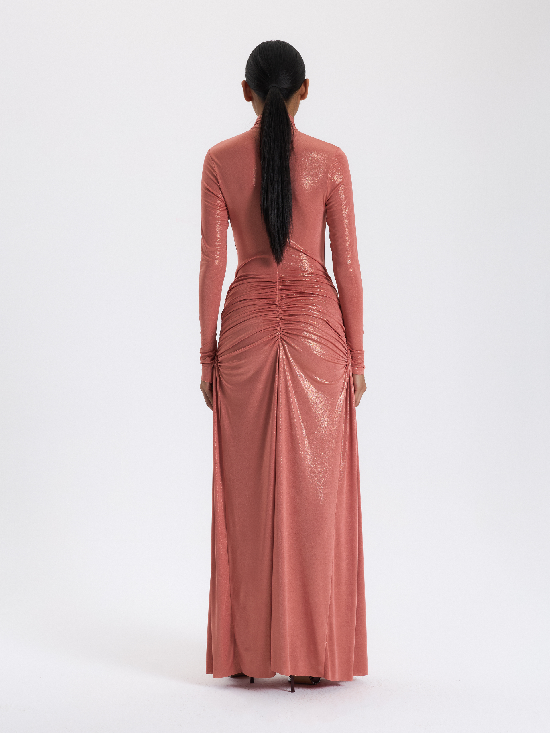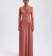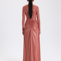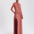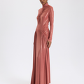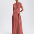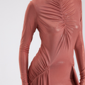 Şeftali Renk Büzgülü Uzun Elbise