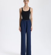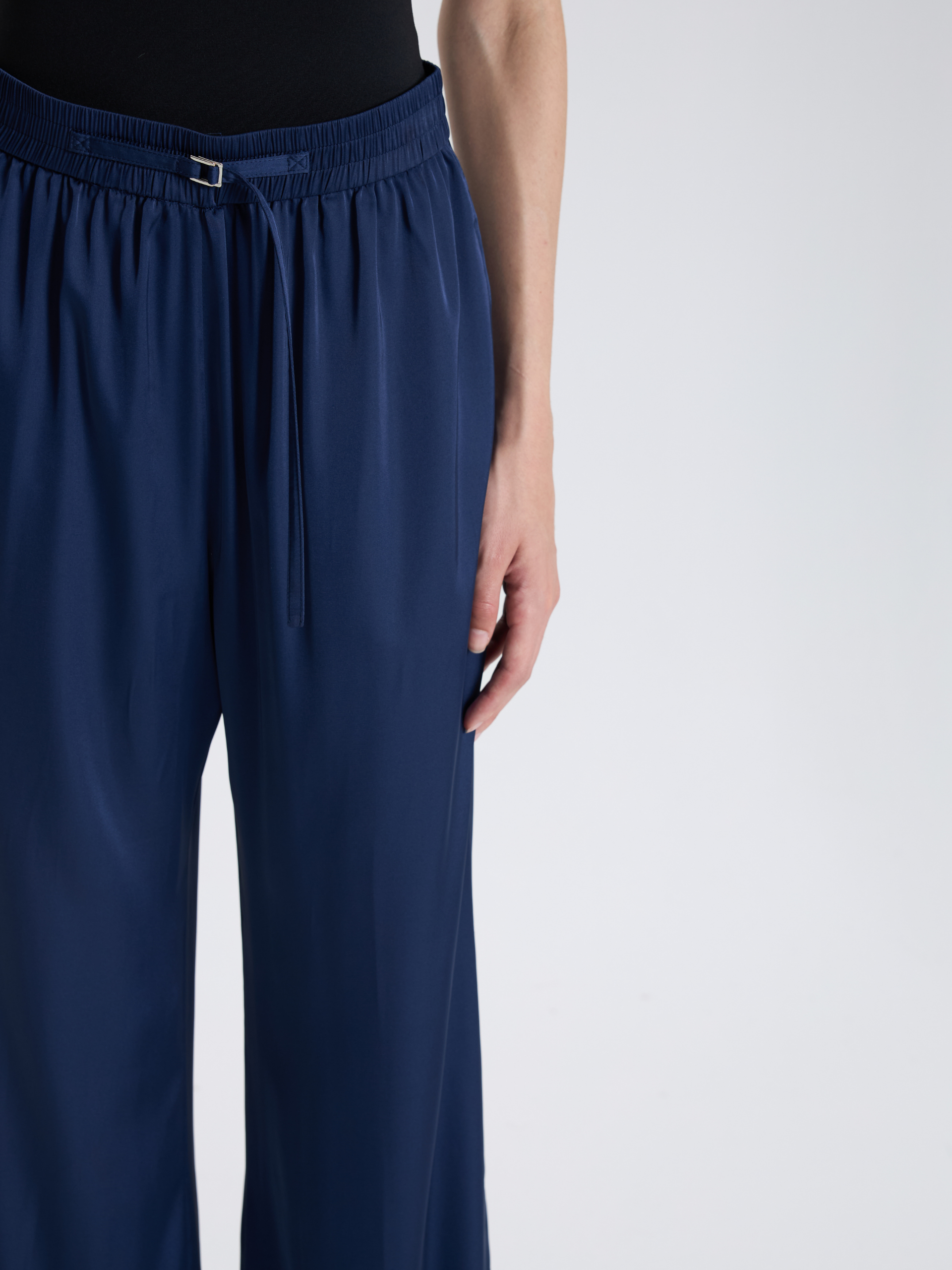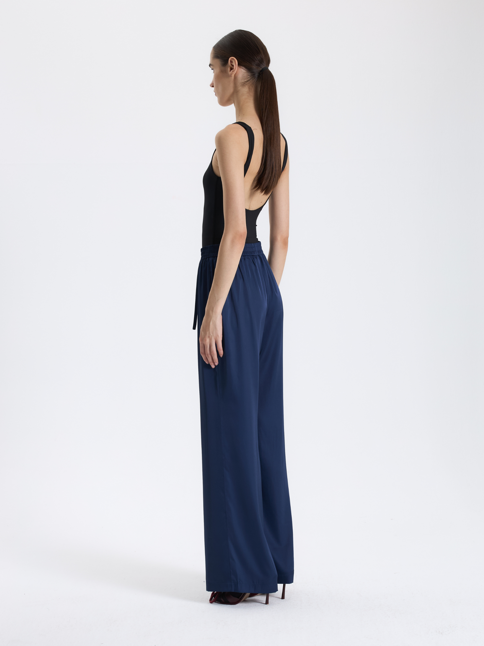 Akıcı formuyla öne çıkan lacivert palazzo pantolon, konfor ve şıklığı bir arada sunuyor.
